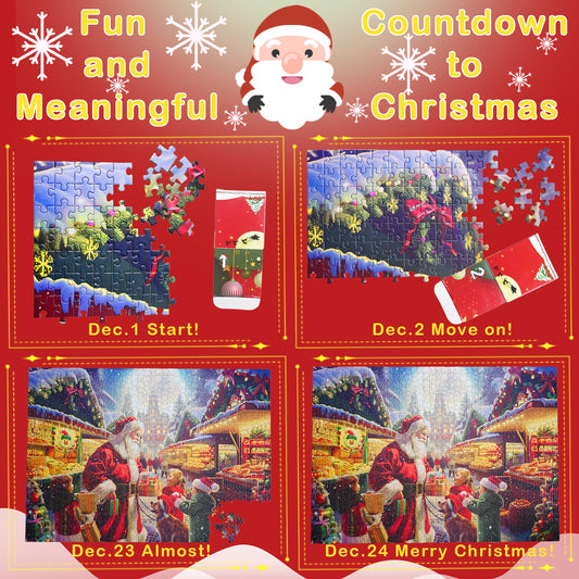 Amestrina Advent Calendar 2024 for Kids and Adults to Christmas Countdown, 1000 Pieces Puzzle Advent Calendar for Boys Girls Teens Women Men, Christmas Scene Jigsaw Puzzle Advent Calendar Gift for Familys (Red)