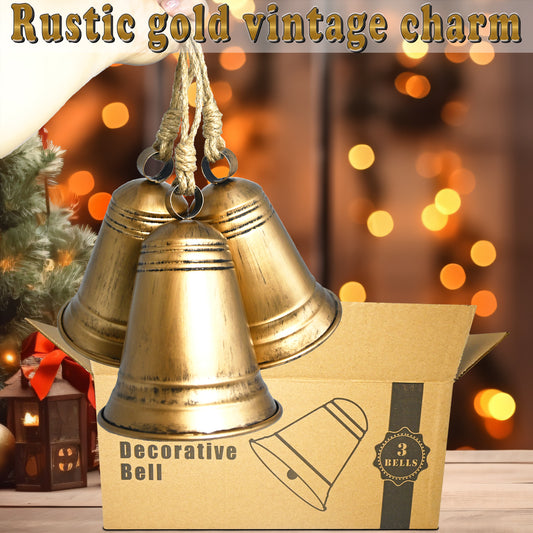SIBLORNIX Christmas Ornament Decoration Bell: Large Vintage Gold Outdoor Hanging Bell, Metal Rustic Bell for Christmas Tree, Mantle, Wreath, Wind Chime, Porch, Door, Pine, Yard, Wreath (Bell)
