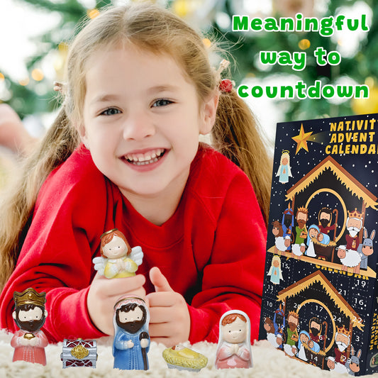 Amestrina Advent Calendar 2024 for Kids to Christmas Countdown, Nativity Advent Calendar for Girls Boys Teens Toddlers, Nativity Scene Set Christmas Advent Calendar Gifts for Friends Familys (Blue)