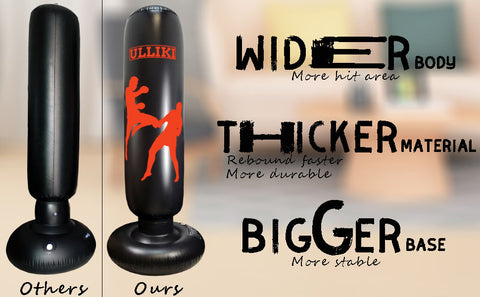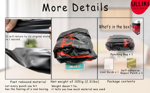 The ULLIKI punching bag is made of a high-stretch material that is thicker than most similar products on the market. Suitable for boxing enthusiasts with different levels of experience. Different heights of punching bag were required by needs: