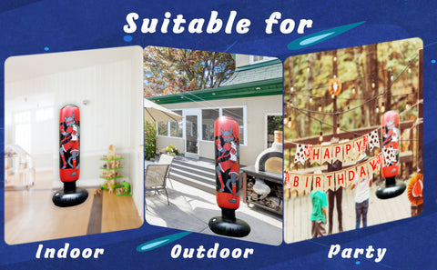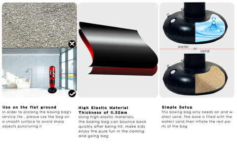 1. The inflatable product will increase in volume after it is inflated, so there may be a little inside space added on the second day after the punching bag for kids is fully inflated, which may make it look like the punching bag for kids is leaking air.