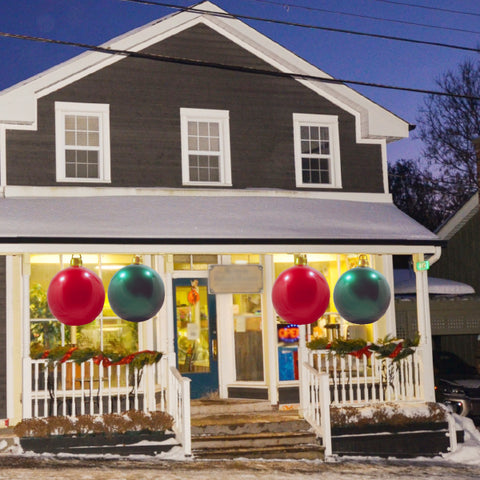 It is oversized and ornate, and perfectly resemblant of the ornaments from your Christmas tree, they are lightweight but durable, and can be anchored to the lawn, or hanged up for effect.